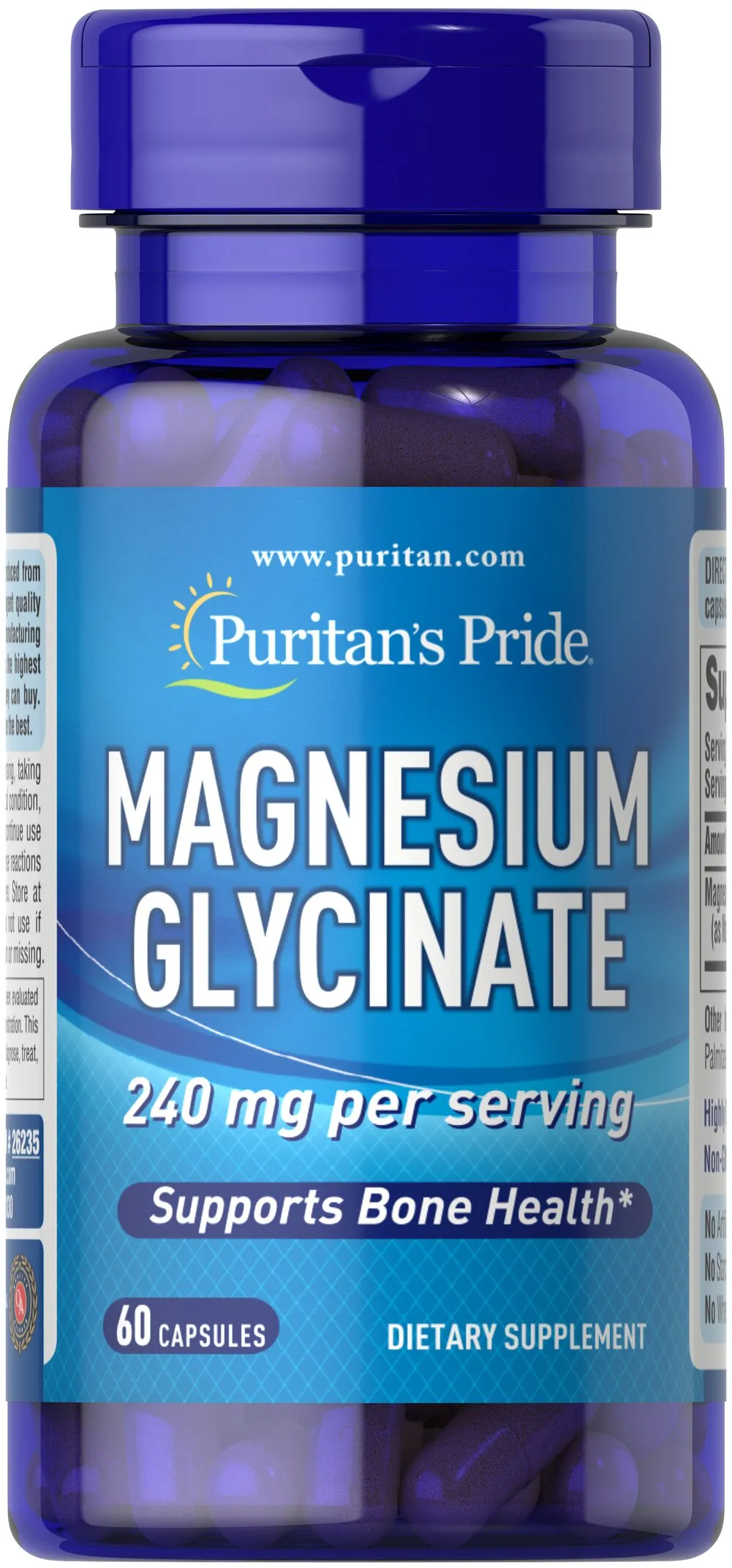 Puritan's Pride 甘胺酸鎂是一種高吸收率的生物利用度鎂,每份可提供超過每日建議鎂攝取量 50% 的鎂,有助於補充您從飲食中攝取的鎂。鎂參與將我們從食物獲得的營養物,補充劑和陽光中獲取的維生素 D 轉化為其儲存形式。此外,鎂在維生素 D 的轉化過程中也扮演著重要角色。鎂和維生素 D 在骨骼健康方面都扮演著重要角色;維生素 D 有助於鈣的吸收,而鎂則參與鈣的運輸。*